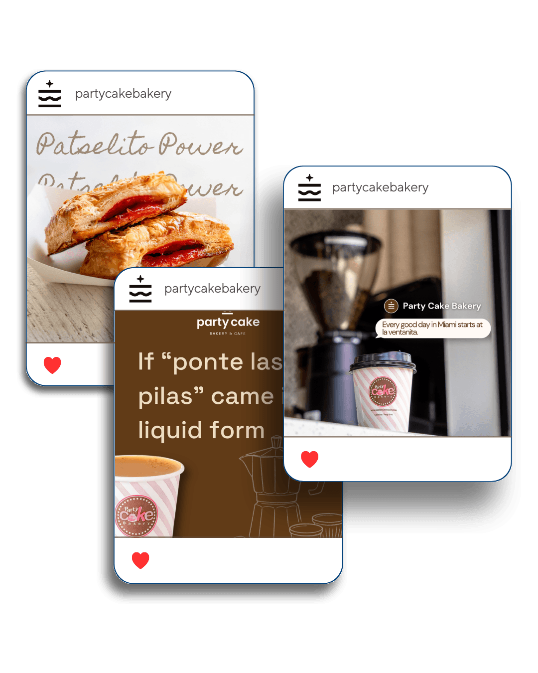 Our work with Party Cake Bakery combined strategic brand evolution with delicious storytelling. As part of their rebrand rollout, we helped translate their refreshed identity across all digital channels — from implementing their new brand guidelines to elevating their visual language on social media. With consistent content production and management, we captured the essence of their iconic pastries, cakes, and Cuban café culture in every post. By aligning their social presence with their in-store experience, we increased engagement, reinforced brand recognition, and helped solidify Party Cake Bakery as a beloved staple across the community — both online and off.
