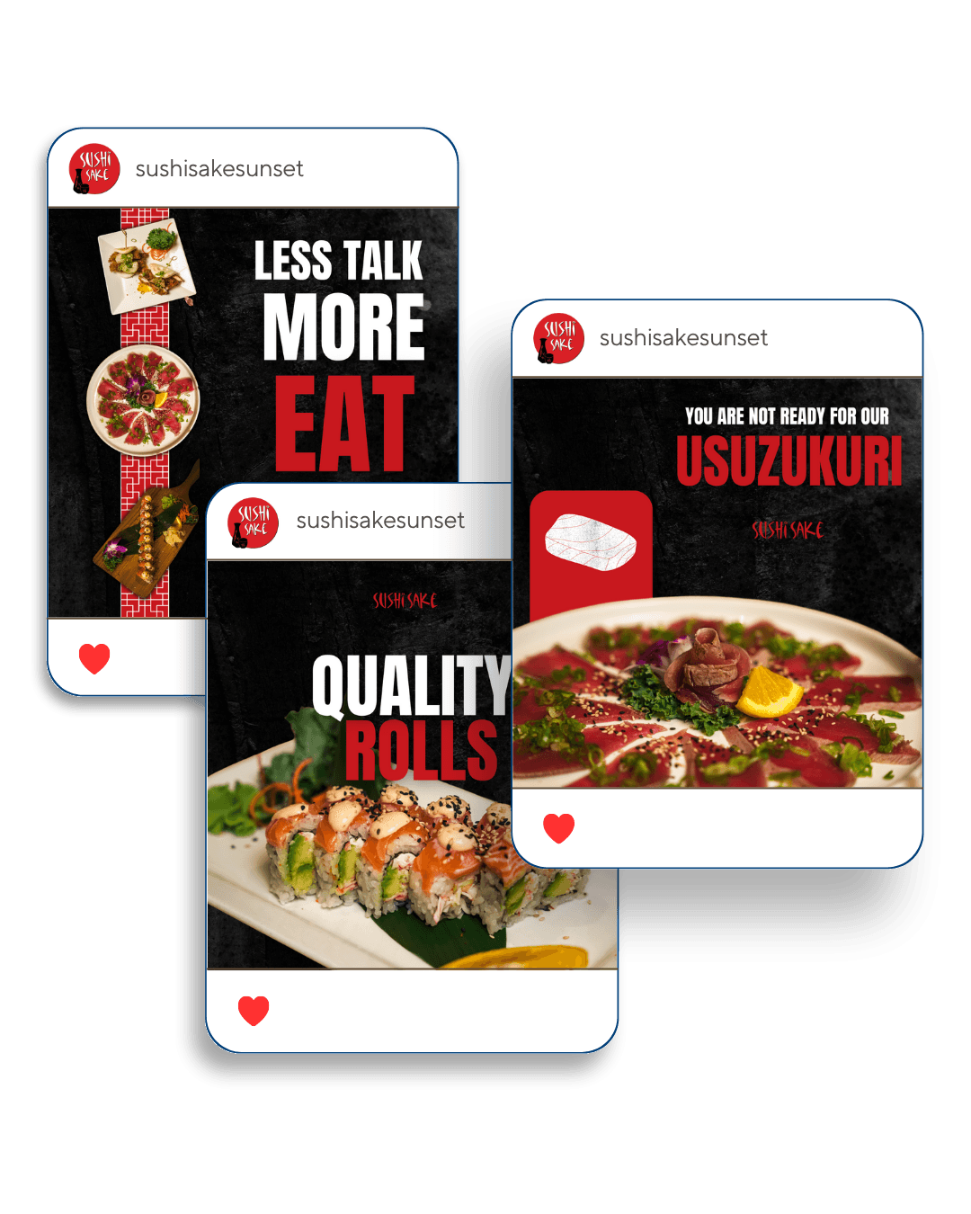 Our collaboration with Sushi Sake Sunset brought fresh flavor to the forefront — both on the plate and online. Tasked with producing high-quality visuals of their new menu items, we captured the essence of their bold, crave-worthy dishes through vibrant photo and video content. Beyond the camera, we curated a library of engaging social media content that reflected the energy of the brand and the experience of dining in. From sizzling sushi rolls to signature sake shots, our goal was to translate taste into scroll-stopping content. The result: an elevated online presence that not only showcased their updated menu but also boosted engagement and helped drive more foot traffic to the restaurant.